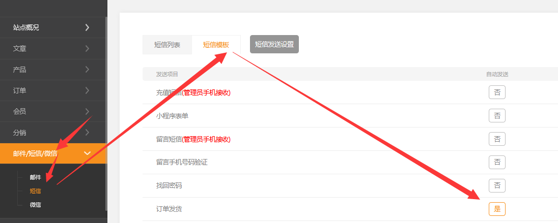 使用此功能前需要先配置短信发送设置