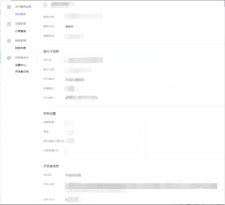 在开发者信息 可以获取到dealid、平台公钥、APP  KEY