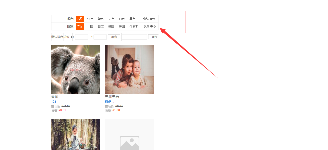 如果需要点击分类出现对应的属性(需要通过超链接  选择产品列表页)如下图