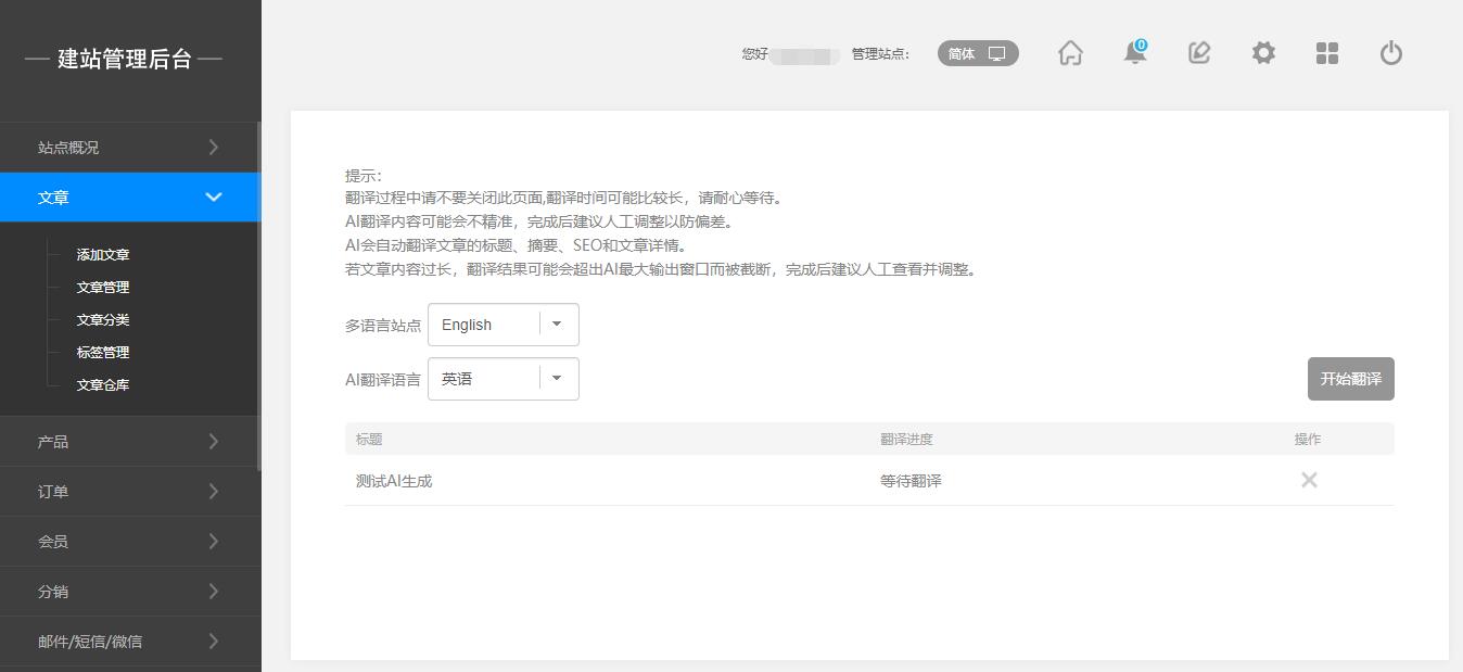 后台:文章管理—勾选文章—AI批量翻译